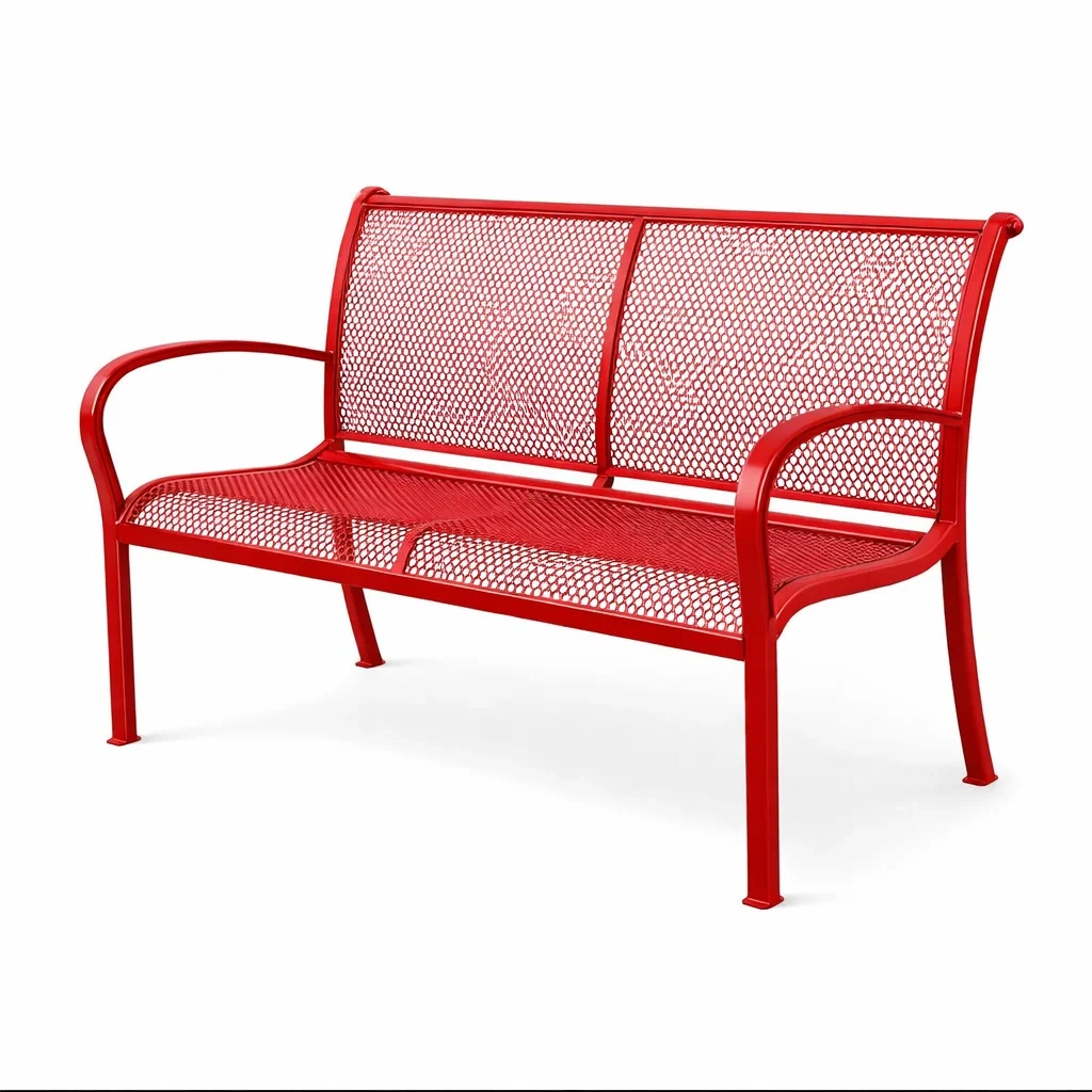 Ce banc en acier est conçu pour l'extérieur. Sa structure robuste est peinte pour résister aux intempéries.